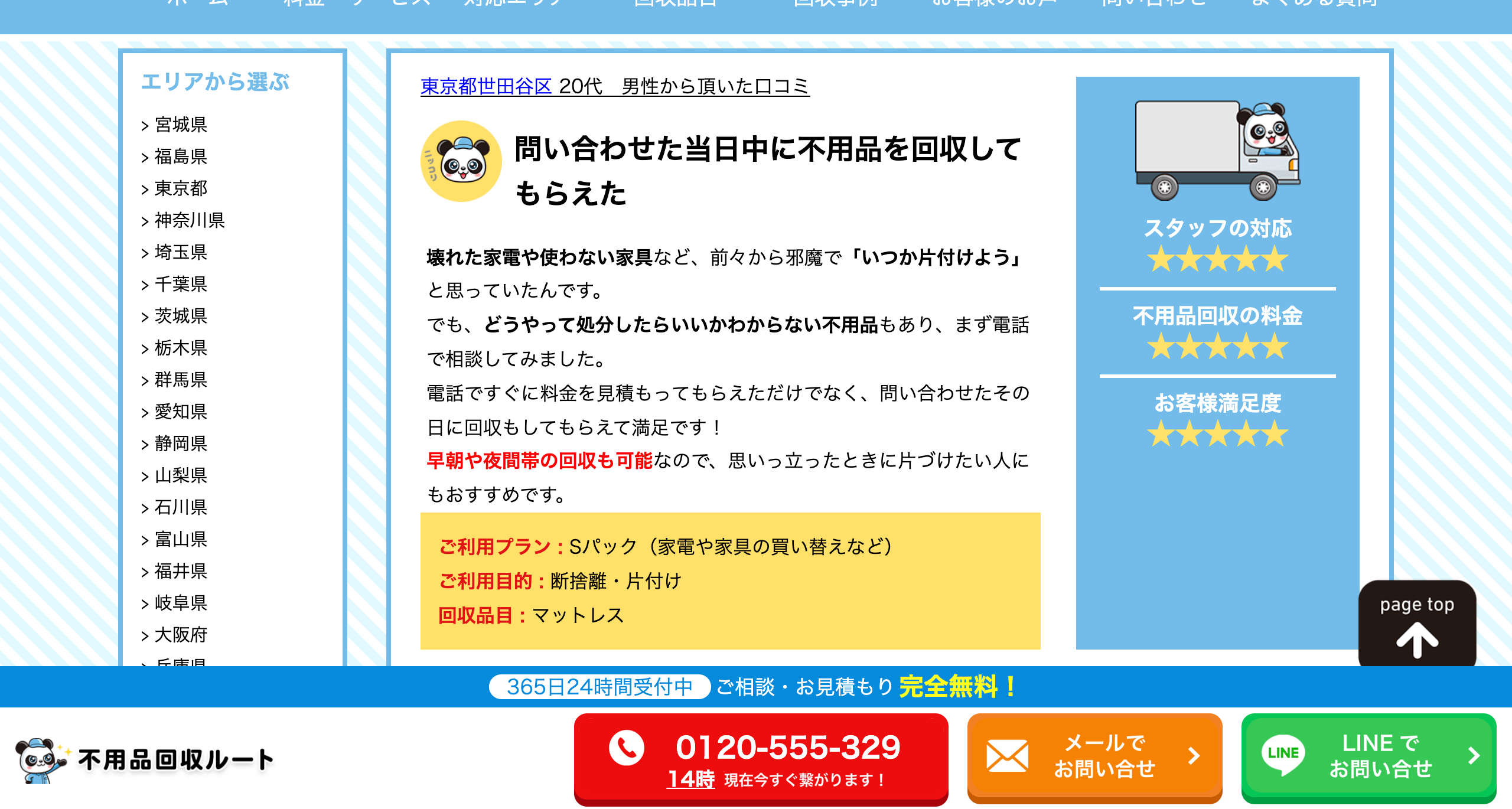 家庭や事業所の不用品回収を行う業者のサービス紹介サイト。自作WordPressテーマによる既存サイトの改修作業と新機能の追加開発を中心に担当した。